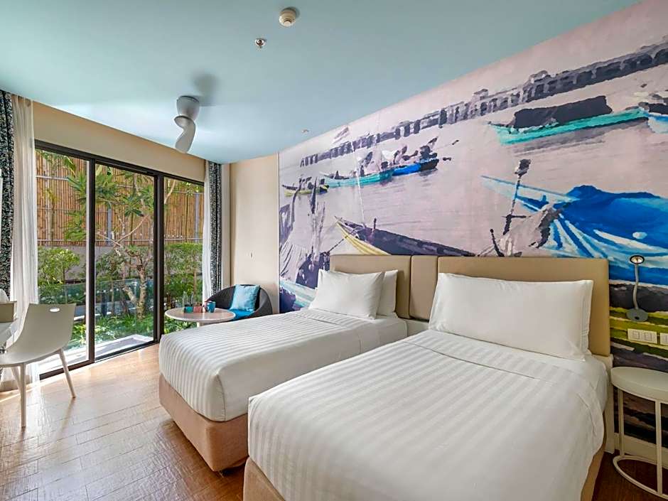This air-conditioned twin room has a desk, a patio, sea views and a private bathroom. The unit has 2 beds.